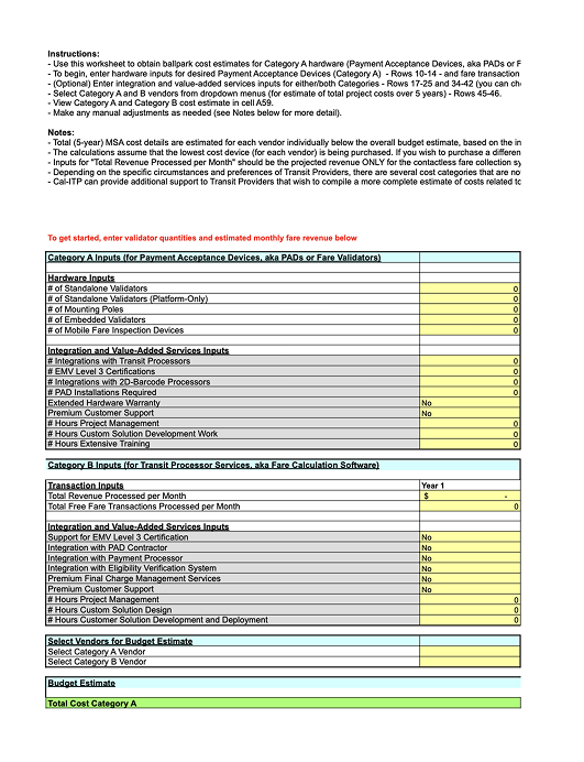 The MSA Cost Estimation Tool will help you create cost estimates for purchasing contactless payment hardware and software services. This workbook helps transit agency staff to: